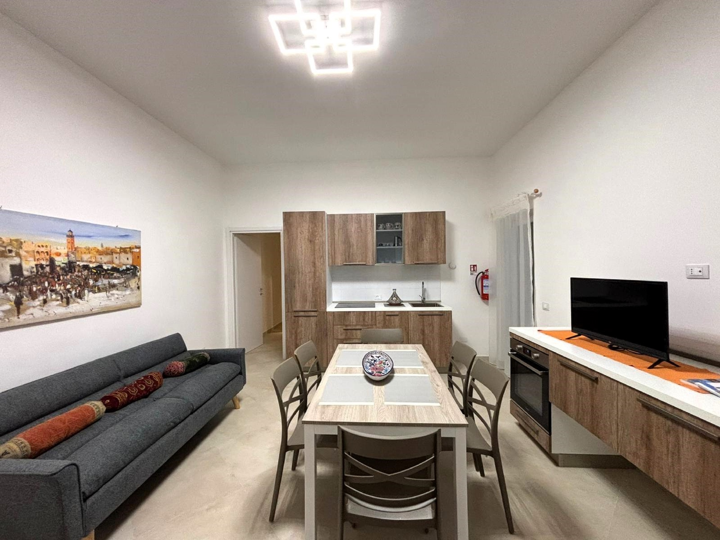 Nuovissimo appartamento a Lecce, in posizione strategica per visitare comodamente la città e per avviarsi verso le splendide spiagge di Porto Cesareo. La casa, dallo stile moderno, offre pieno comfort con le sue 3 camere da letto e i 3 bagni, un ampio soggiorno con cucina completa e tavolo da pranzo. Tra i servizi offerti troverete aria condizionata in ogni camera, tv, WiFi, lavatrice, lavastoviglie. Il parcheggio gratuito in strada si trova facilmente. La zona in cui è ubicato l’appartamento offre tutti i servizi di cui si ha necessità.